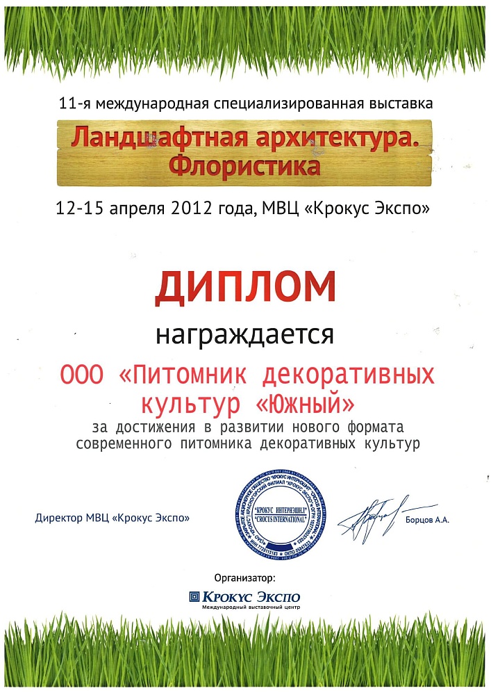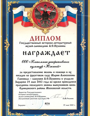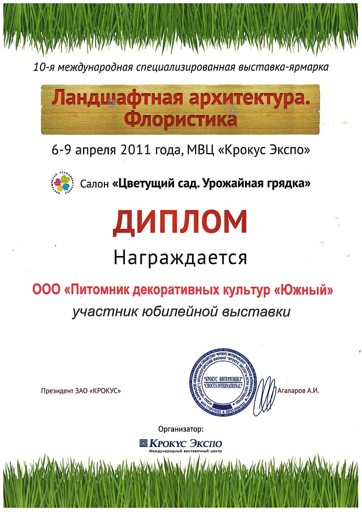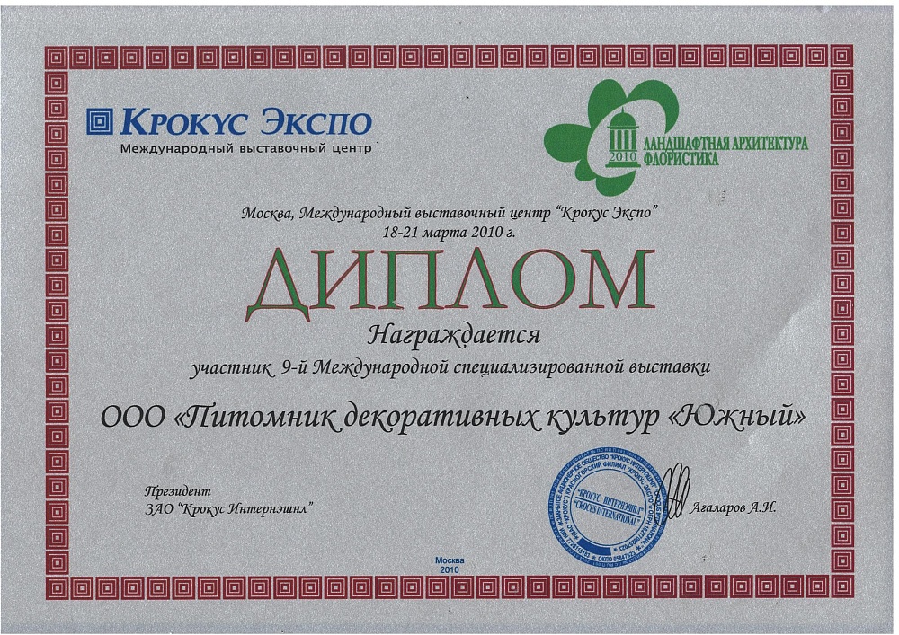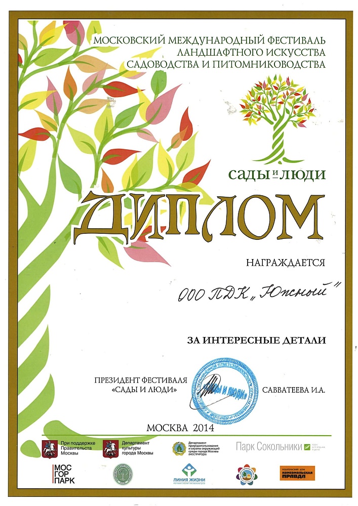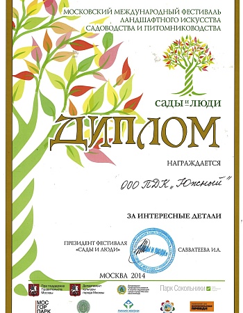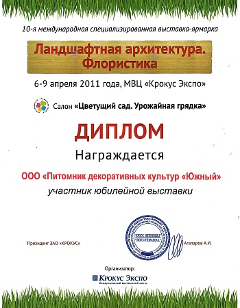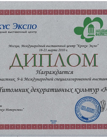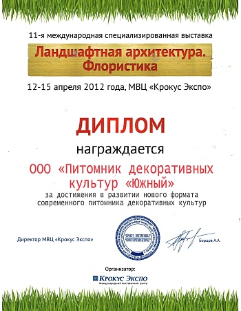 Питомнику выдан Профессиональный ландшафтный сертификат Ассоциации ландшафтных архитекторов России.