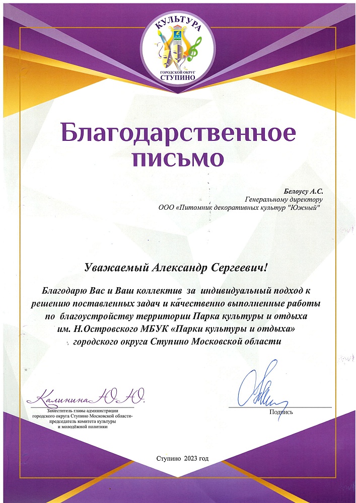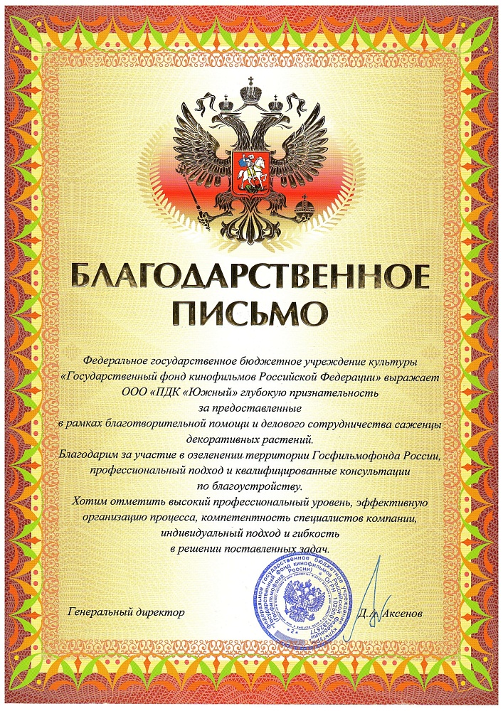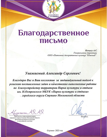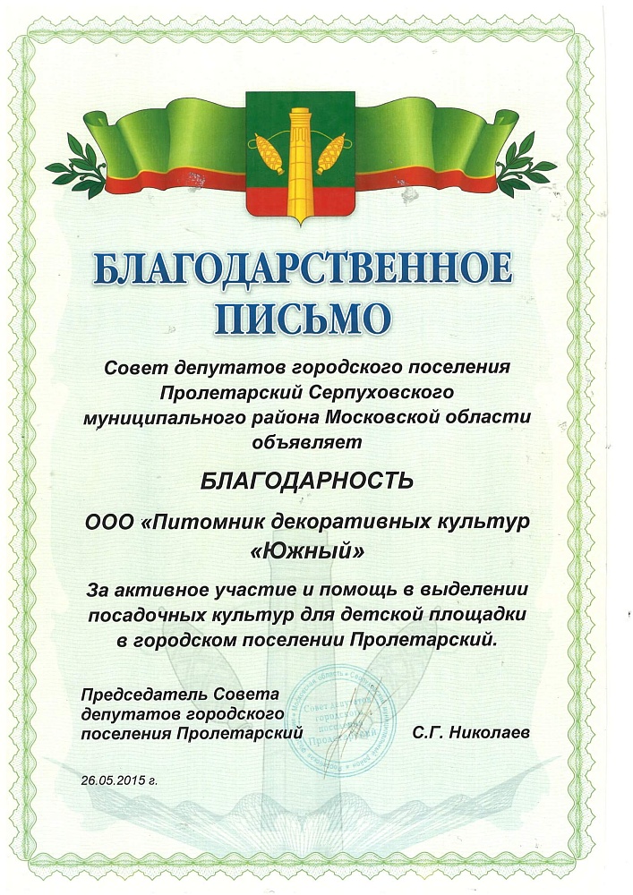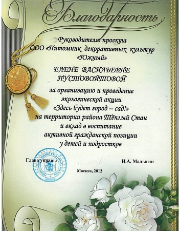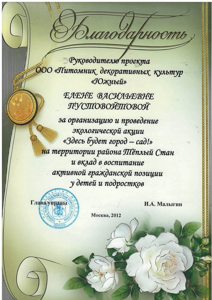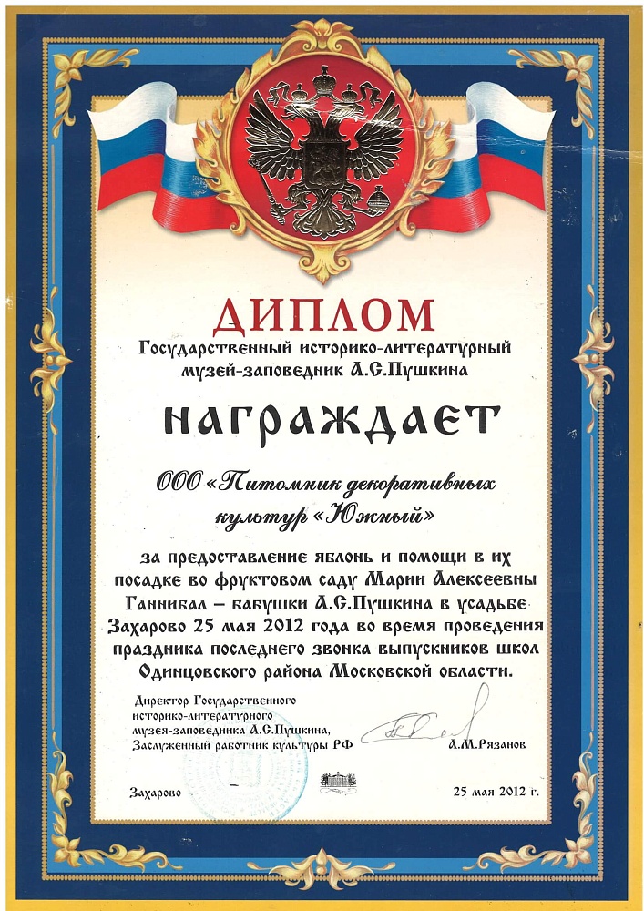 Питомнику выдан Профессиональный ландшафтный сертификат Ассоциации ландшафтных архитекторов России.