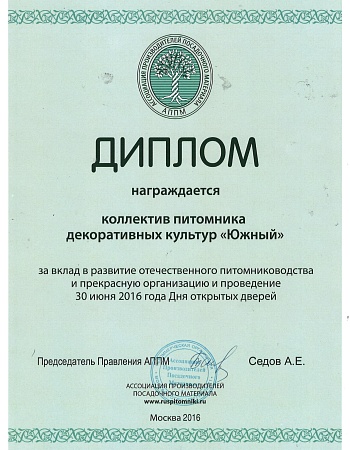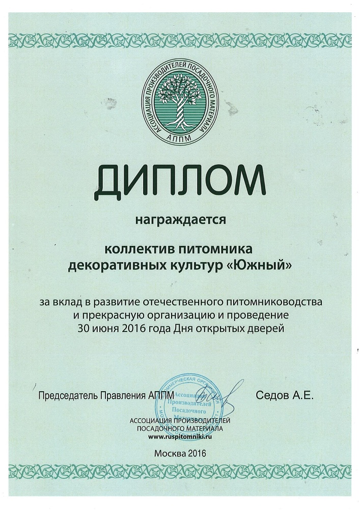 ПДК “Южный” является постоянным членом Ассоциации производителей посадочного материала, активно участвуем в выставках и отраслевых мероприятиях, которые регулярно проводим на своей уникальной территории.