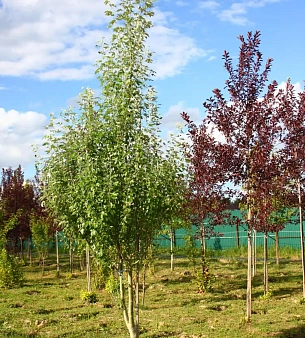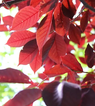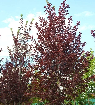 Черёмуха виргинская «Шуберт» до 5-6 метров высотой. Обильно цветёт весной белыми цветками. Листья при распускании зелёные, затем темнеют, становятся насыщенного бордового, пурпурного цветов. Морозостойкая, любит солнце, к почвам спокойна. Съедобные плоды — мелкие ягодки. В питомнике можно купить оптом.