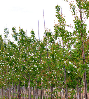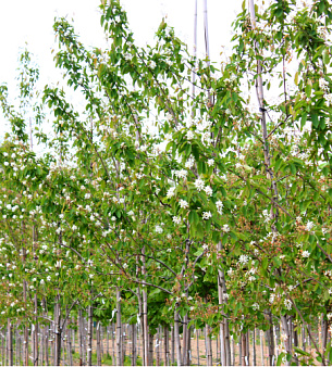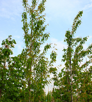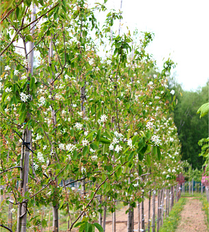 Ирга Ламарка в высоту до 8 метров. Листья при появлении розоватые, затем сизо-зелёные, осенью оранжевые, красные, пурпурные. Чёрные плоды. Цветы белые, обильно цветёт. Морозоустойчива, любит солнце, но выносит и полутень, выдерживает любые почвы. В питомнике саженцы можно купить оптом.