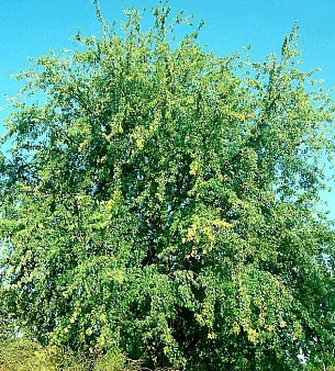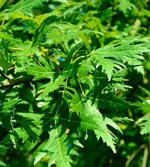 Дерево высотой 12-15(макс 20) метров и диаметром кроны до 6-10 м с низко отходящими от ствола ветвями. Кора светло-серая с неглубокими длинными трещинами. Листья с тонкими, узкими, глубоко раздельными лопастями. При распускании розоватые, затем с верхней стороны зеленые, а с нижней – серебристо-белые. Листья очень ажурные. Осенью становятся светло-желтыми или зеленовато-желтыми. Цветет в апреле до распускания листьев. Цветки красноватые. Растет быстро.