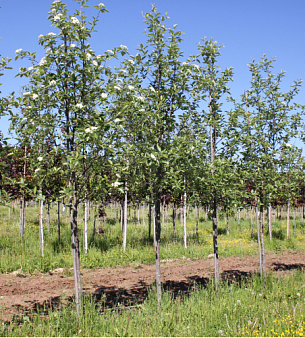 Рябина обыкновенная «Фастигиата» высотой до 5-7 метров. Вытянутая пирамидальная крона, хорошо для создания ярких вертикальных акцентов при озеленении. Неприхотлива к почве, морозостойкая. Яркие красные плоды в кистях, диаметром до 15 сантиметров. В питомнике можно купить оптом.