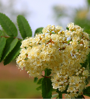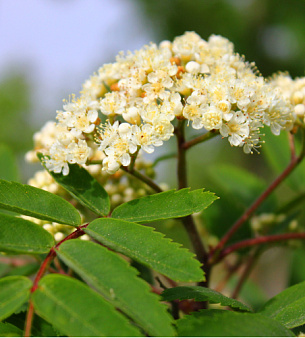 Рябина обыкновенная ро 6 метров в высоту, дерево или кустарник. Морозоустойчива, неприхотлива к почвам, переносит лёгкое подтопление, любит солнце, но переносит тень. Цветёт соцветиями до 15 сантиметров в диаметре, красивые красные гроздья плодов. В питомнике можно купить оптом.