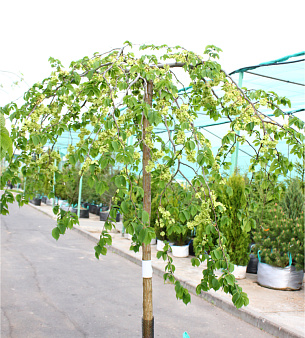 Вяз шершавый «Кампердоуни» высотой до 5 метров, с необычайно широкой кроной, можно использовать для создания арок, шатров, тоннелей. Морозостоек, любит влажные песчаные и плодородные почвы. Любит свет. Цветёт до появления листьев фиолетовыми цветами. В питомнике саженцы оптом.