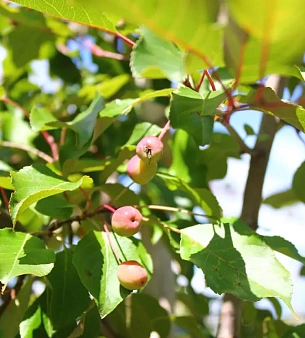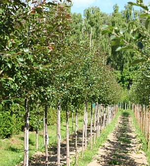 Яблоня декоративная «Маковецкого» до 5 метров высотой. Листья красные при распускании, летом зелёные с красноватыми жилками, осенью желтовато-коричневые. Плоды съедобные, до 5 сантиметров. Цветы крупные, тёмно-розовые. Светолюбива, зимостойка. В питомнике саженцы можно купить оптом.
