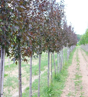 Яблоня декоративная «Роялти» До 4-6 метров высотой. В цвету очень красива — крупные цветки, рубиновые или малиново-красные. Листья пурпурные, красные, багряные осенью. Плоды мелкие, красного цвета. Морозоустойчива, светолюбива, не требует особых почв. В питомнике можно купить саженцы разных размеров, оптом.