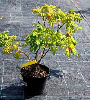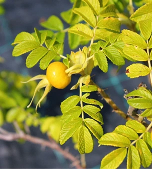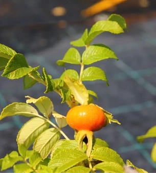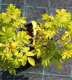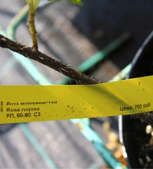 Роза морщинистая до 2 метров высотой. Боярышник. Цветёт с июня до осени, крупные цветы или соцветия пурпурного цвета, ароматные. Плоды красного цвета, богаты витамином С. Листья морщинистые, крупные, тёмно-зелёные, осенью жёлтых тонов. Неприхотлива. В питомнике саженцы можно купить оптом.