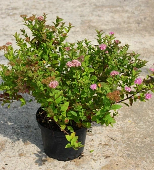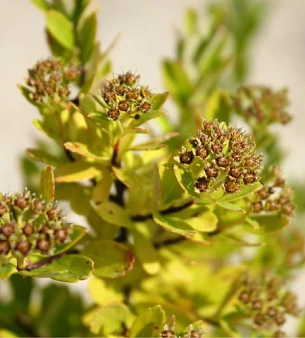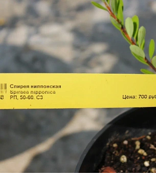Спирея ниппонская до 3 метров высотой. Цветёт в июне бело-жёлтыми цветами в крупных соцветиях. Листья округлые зелёные, сохраняют окраску до поздней осени. Требовательна к влаге, предпочитает лёгкие слабокислые почвы, светолюбива, зимостойка, легко переносит обрезку. В питомнике можно купить оптом.