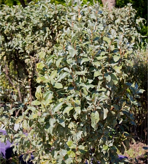Невысокое листопадное деревце или кустарник высотой до 4 метров. Листья его яйцевидные, кожистые, серебристые с обеих сторон. До листопада они не меняют своей окраски.