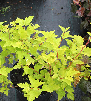 Кустарник с золотистой листвой высотой до 1,5 -2 м. Равномерно облиствен, благодаря чему выглядит пышно и красиво сверху донизу. Цветы бело-розовые, собраны в многочисленные щитки. Осенью приобретает бронзовый оттенок. Зимостойкость, неприхотливость, устойчивость к вредителям и заболеваниям. Место для пузыреплодника может быть и солнечным, и полутенистым. Однако следует учитывать: чем меньше света, тем менее яркая листва. Поэтому полутень должна быть легкой и ажурной. Растение не требовательно к составу почвы и растет где угодно, но предпочитает рыхлые кислые суглинки с реакцией pH 4.5-5.0.