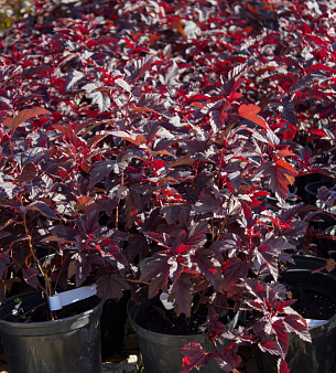 Пузыреплодник калинолистный «Литтл Ангел» до 1 метра высотой. Цветёт белыми соцветиями всё лето, затем образуются плоды — выпуклые пузырчатые, красного цвета. Листья красного, бордового цветов — меняют оттенки. Устойчив к городским условиям, морозостойкий. В питомнике можно купить оптом.