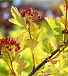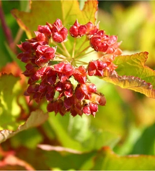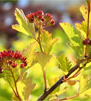 Пузыреплодник калинолистный до 3 метров высотой. Цветёт в июне-июле белыми или розоватыми цветами в шаровидных соцветиях. Плоды пузырчатые в «соцветиях», коричневатые. Хорошо выносит стрижку, формовку. Листья зубчато-пильчатые, осенью желтеют или краснеют. В питомнике можно купить оптом.
