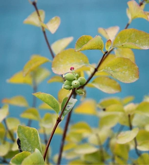 Снежноягодник белый слабоблестящий или Снежноягодник кистистый слабоблестящий, высотой до 1,5 метров. Цветёт обильно с июля до сентябрь. Цветки мелкие, розоватые, в пазухах листьев на концах ветвей. Листья тёмно-зелёные, слегка продолговатые, округлые. В питомнике можно купить оптом.