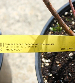 Спирея серая (пепельная) «Грефшейм«» высотой до 2 метров. Цветёт с мая по конец июня белыми в соцветиях цветами. Цветёт обильно, за цветами весной не видно листьев. В это время куст напоминает белое облако. Любит свет, но спокойно выносит полутень, морозоустойчива. В питомнике можно купить оптом.