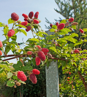 Малина Сказка относится к штамбовым сортам. Отличается высокой урожайностью, а именно созреванием до 5-6 кг ягод на одном кусте. При этом растение вырастает не больше 2 м, побеги мощные, лишены шипов. Опасаться распространения по всему участку не стоит, так как поросли за сезон формируются в незначительном количестве.