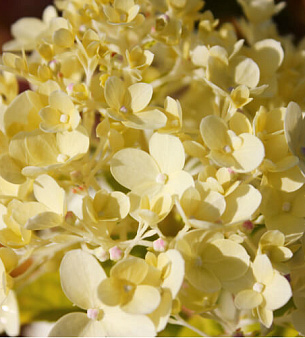 До 3 м высоты, соцветия сначала зеленые, потом лимонного цвета – до белого, цветет с августа до октября. Сорт относительно неприхотлив, выдерживает посадку и на солнце, и в тени. Но при этом важно защитить растения от сквозняков, сильного ветра, который может повредить побеги. Ежегодный прирост составляет 25-30 см. Сорт гортензии «Лаймлайт» считается морозоустойчивым, но он не переносит понижение температуры до −29 градусов и ниже. Влажность — вот то, что по-настоящему важно для этой гортензии. Сорт влаголюбив и нуждается в частом обильном поливе, но ему противопоказаны места с высоким уровнем грунтовых вод. Если гортензия высажена на освещенном месте, землю придется оберегать от пересыхания.
