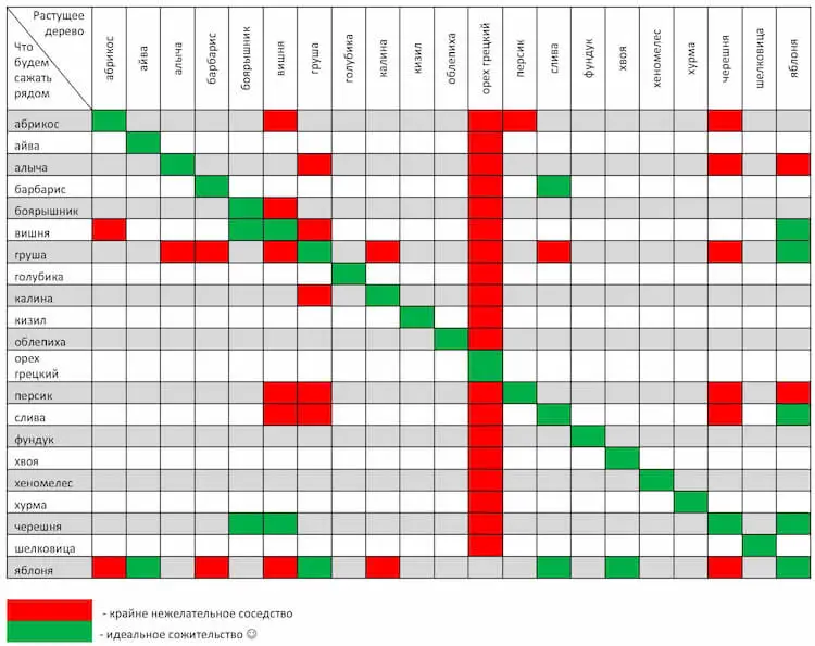 Для организации подобного участка также можно использовать влаголюбивые плодовые деревья и кустарники. Совместимость плодовых деревьев и кустарников можно посмотреть в таблице.